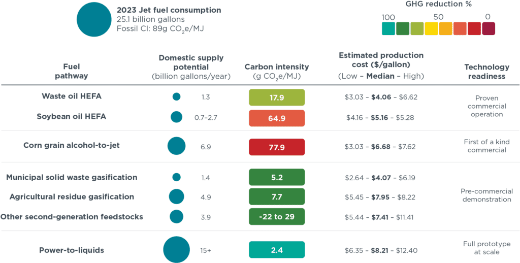 Key characteristics of relevant SAF pathways in the United States