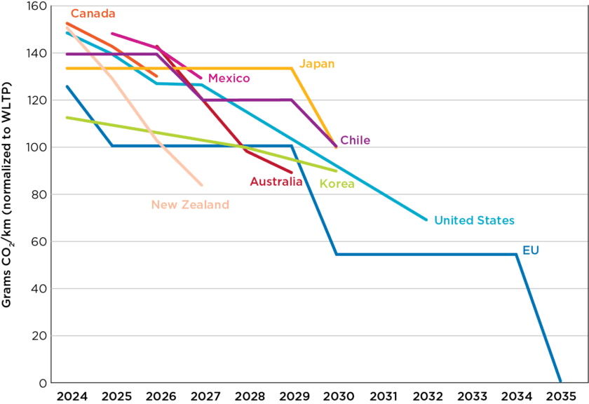 Comparison of light-duty vehicle performance-based standards, 2024–2035.