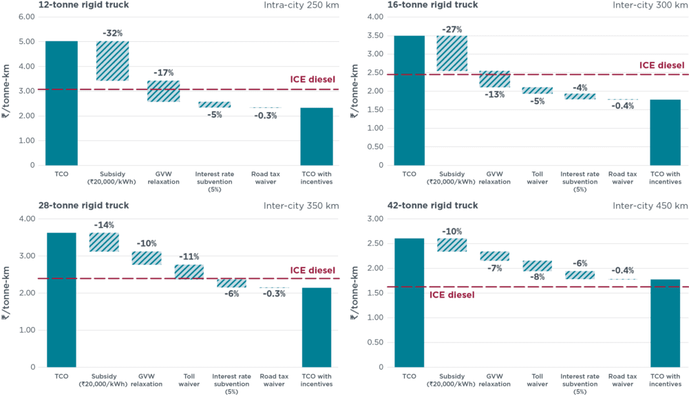India’s path to electric trucks faces a key hurdle—cost. While battery-electric trucks cost more upfront than diesel trucks today, targeted policies can level the playing field. This powerful ICCT visual showed how a combination of purchase subsidies, tax waivers, and technical accommodations, could bring electric trucks to cost parity in India within a few years. […]