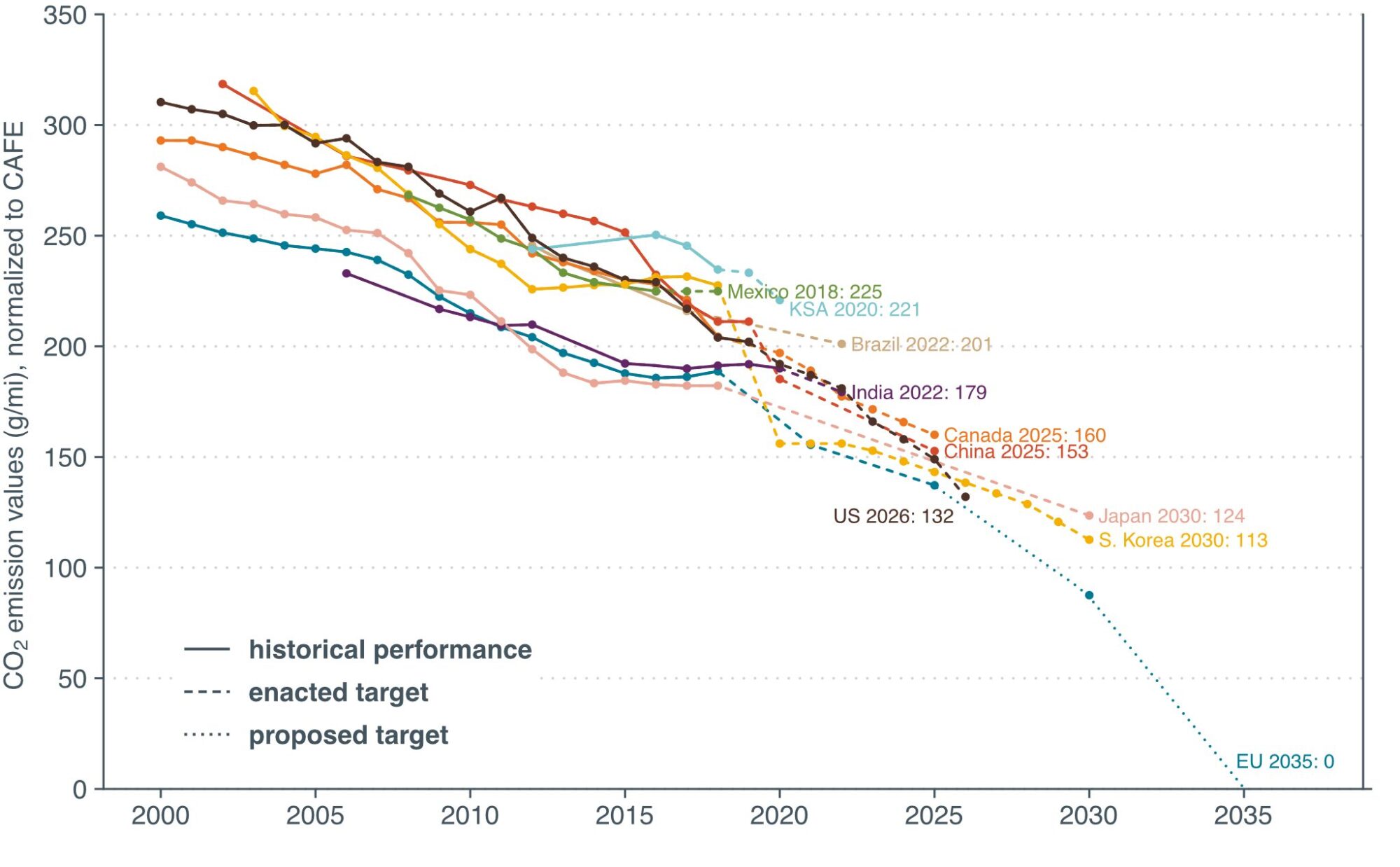 20 December 2021 (Washington, DC) — The Revised 2023 and Later Model Year Light-Duty Vehicle Greenhouse Gas Emissions Standards issued today by the U.S. Environmental Protection Agency will reduce GHG emissions from cars and light trucks by 5% to 10% per year in model years 2023 to 2026 (9.8% in 2022–2023, 5.1% in 2023–2024, 6.6% in 2024–2025, 10.3% in 2025–2026). This welcome revision to the regulation largely corrects for a rollback that was fundamentally flawed and put the United States out of step with every other major auto market and manufacturing center. The rule will get the U.S. fleet moving again in the same direction as most other major world automobile markets, toward the administration’s goals of a 50% reduction in carbon emissions by 2030 and net-zero by 2050.