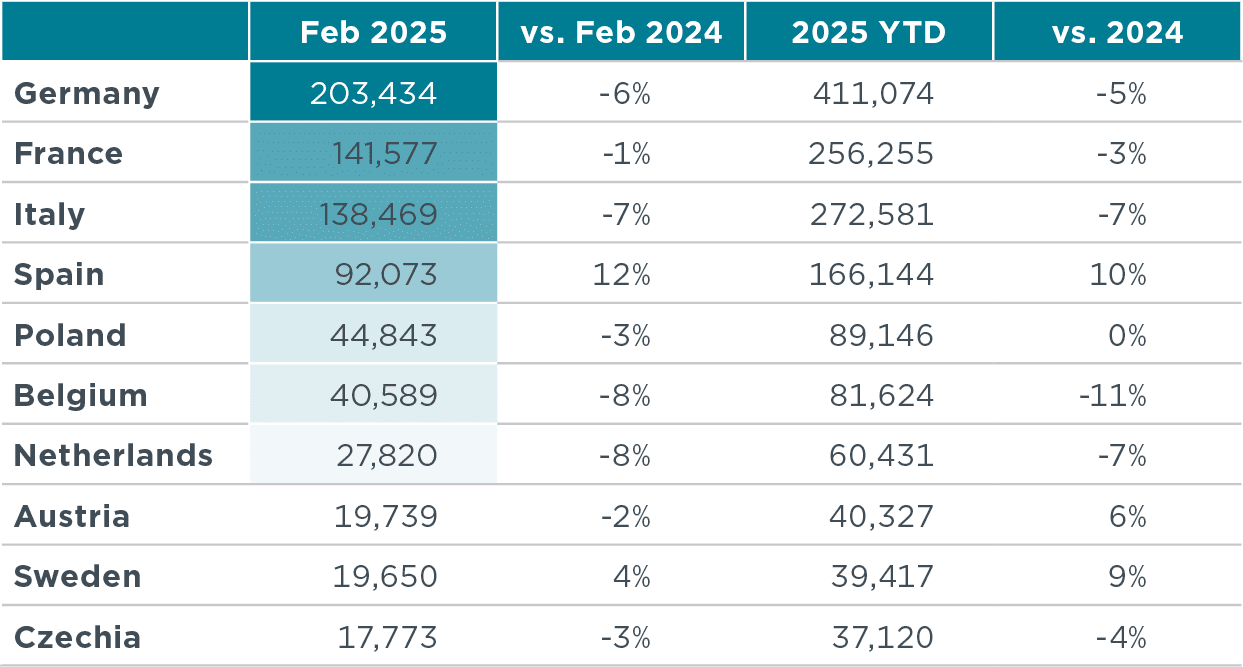 European Market Monitor: Cars and vans (February 2025)